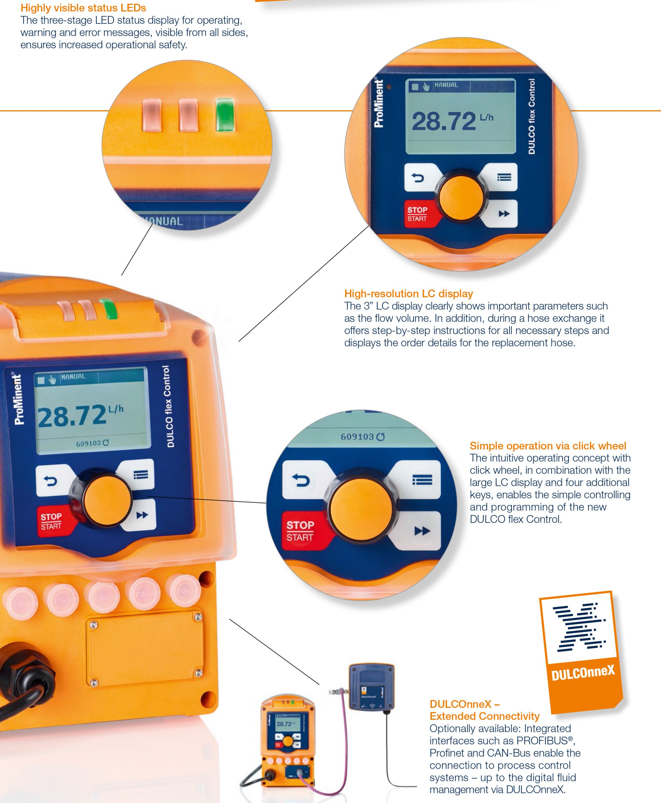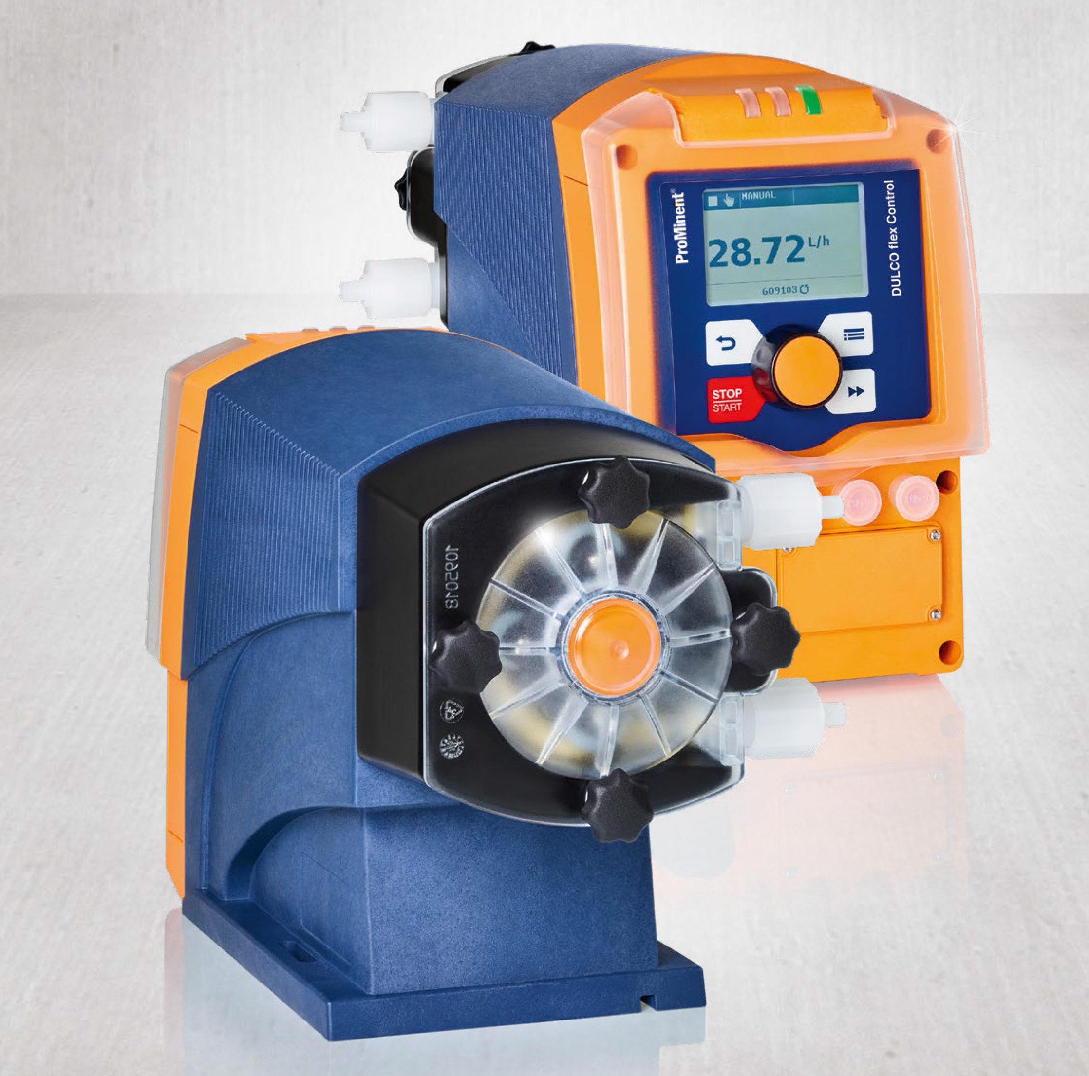 DULCOFLEX DFXa là thế hệ bơm định lượng peristaltic cao cấp nhất của Prominent Đức, kết hợp hoàn hảo giữa độ chính xác của bơm màng định lượng (diaphragm metering pump) và tính linh hoạt của bơm nhu động (peristaltic pump).