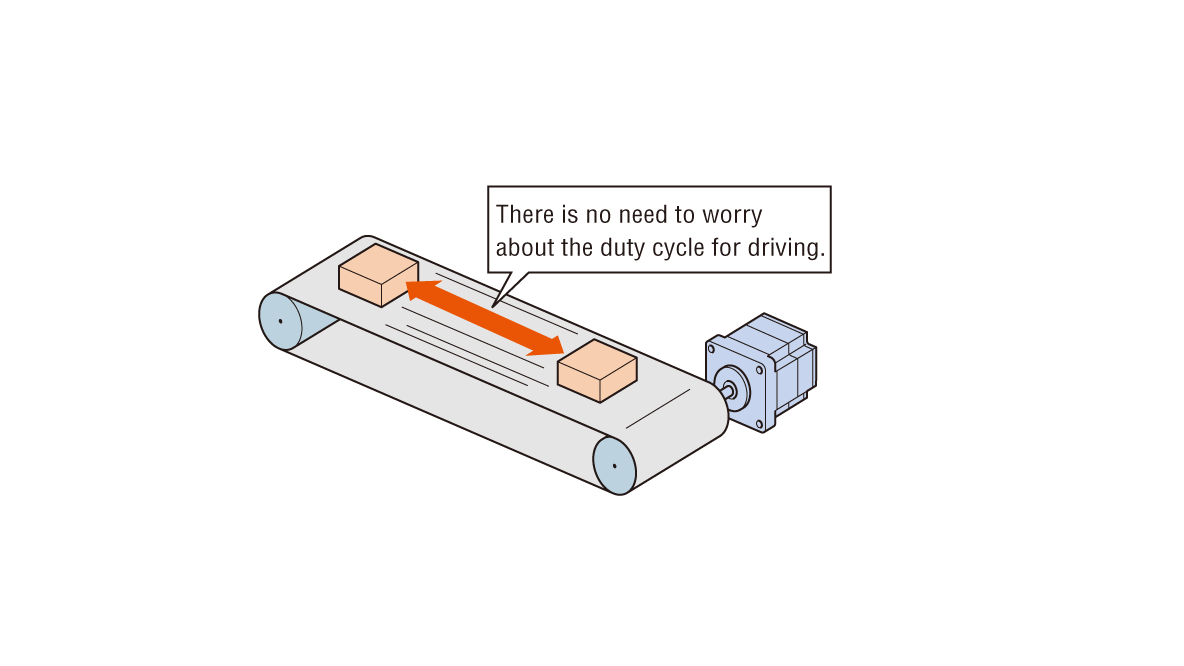 During positioning, the motor stops with its own holding force without hunting. Because of this, it is ideal for applications where the low rigidity of the mechanism requires absence of vibration upon stopping.