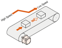 Simple configuration with only motor, driver, and programmable controller. The operating speed, acceleration/deceleration time and operating current are set by driver switches, and the FWD (RVS) input is simply turned ON and OFF. Simple speed control with the performance of a speed control motor is possible.