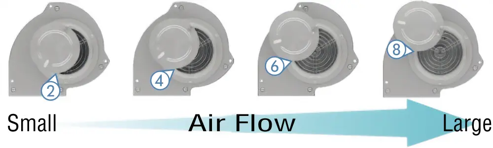 Adjust the opening area of the intake to change the air flow. Adjustment can be performed manually.