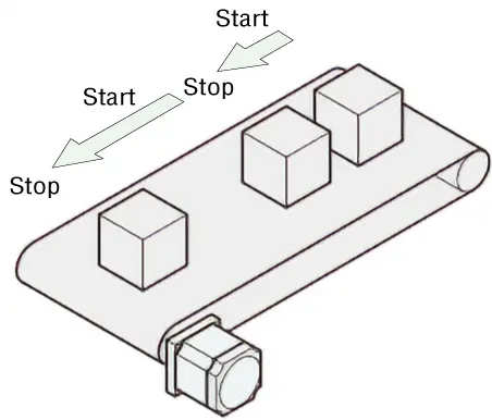 Simply turn off the power supply to stop the motor. Within the motor permissible load inertia, stopping within a 10˚ tolerance is possible. If you use a highly accurate switch, simple and highly accurate positioning is possible.
