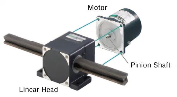 Combined with a linear head, the rotary motion of the motor can be converted to linear motion. Square rack type and round rack type are available.