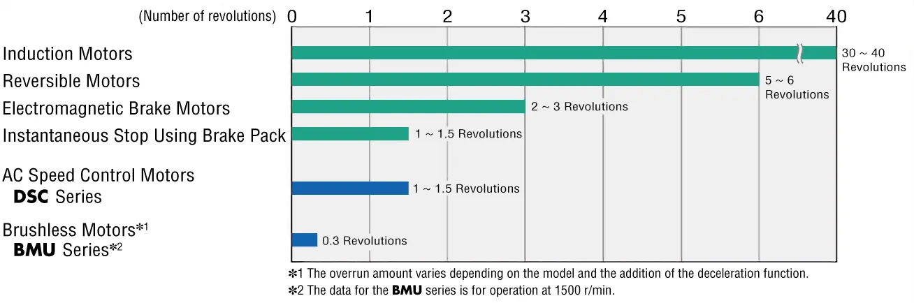 Overrun can be reduced when electromagnetic brake motors or instantaneous stop functions are used.