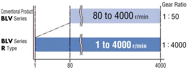 Low speed range from 1 r/min provides stable operation for smoother starts and stops.