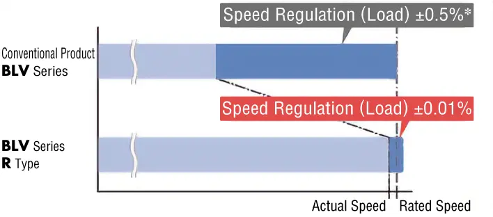 Speed regulation (load) is as small as ±0.01 %. Operation maintains the set speed even if load magnitude changes.