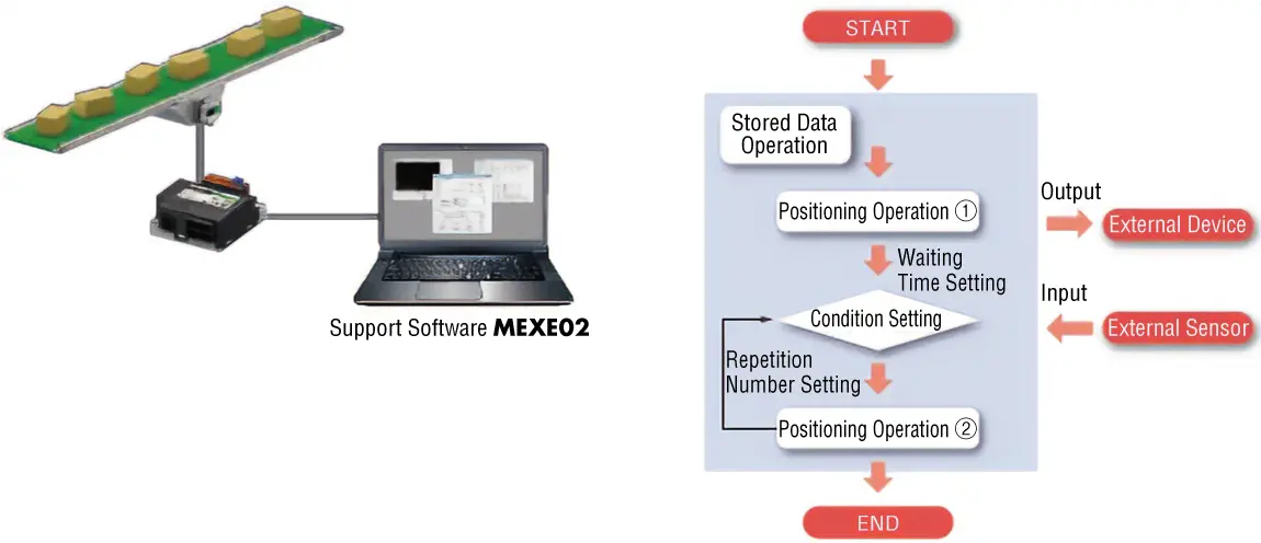 When used during a stored data operation, it comes equipped for a wide variety of sequence functions, such as including linked operation, timer settings for each operation, conditional branches, and loop count.