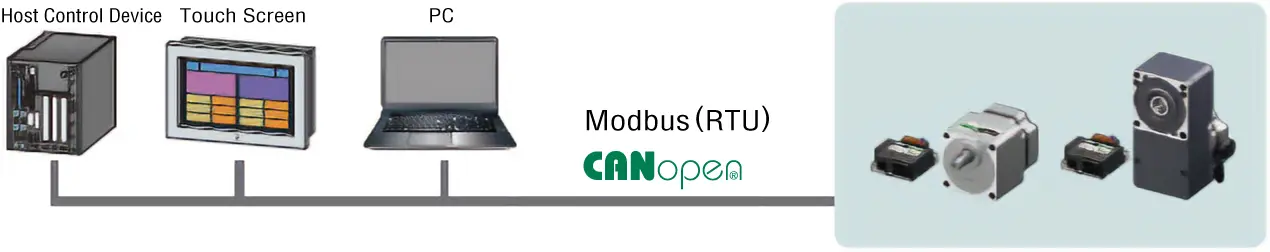 BLV Series R-Type is compatible with 2 communication interfaces: Modbus (RTU) and CANopen.