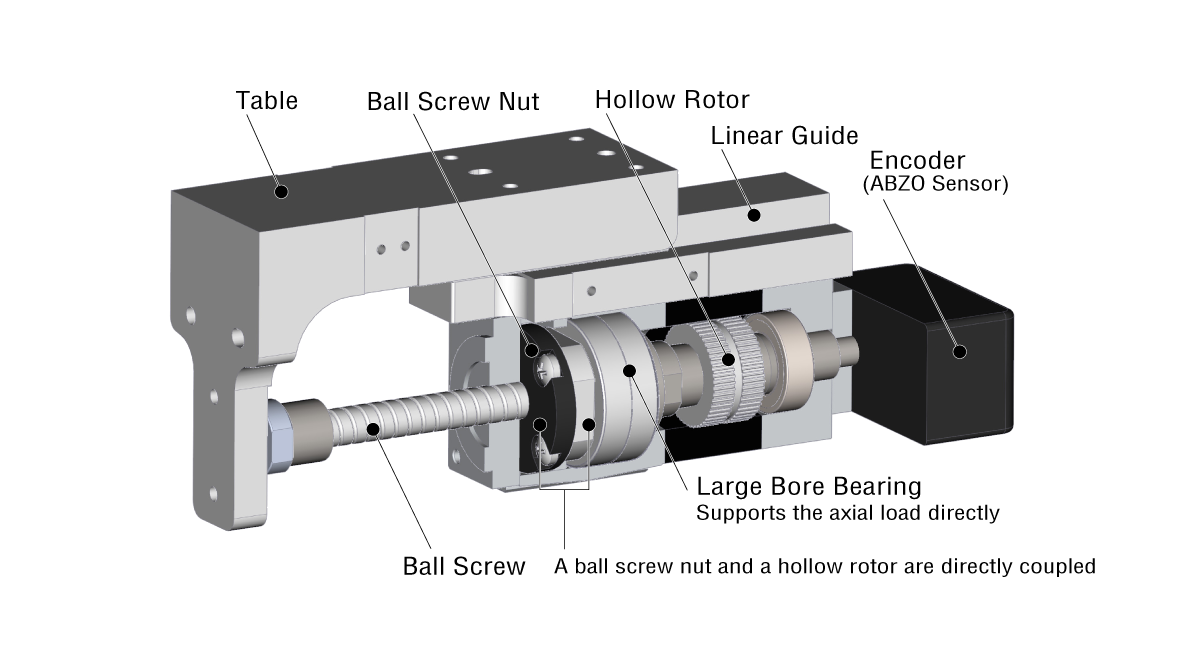 By integrating the hollow rotor and ball screw nut without using couplings or other connecting parts, the rigidity of the parts and the effect of backlash due to combining are reduced.