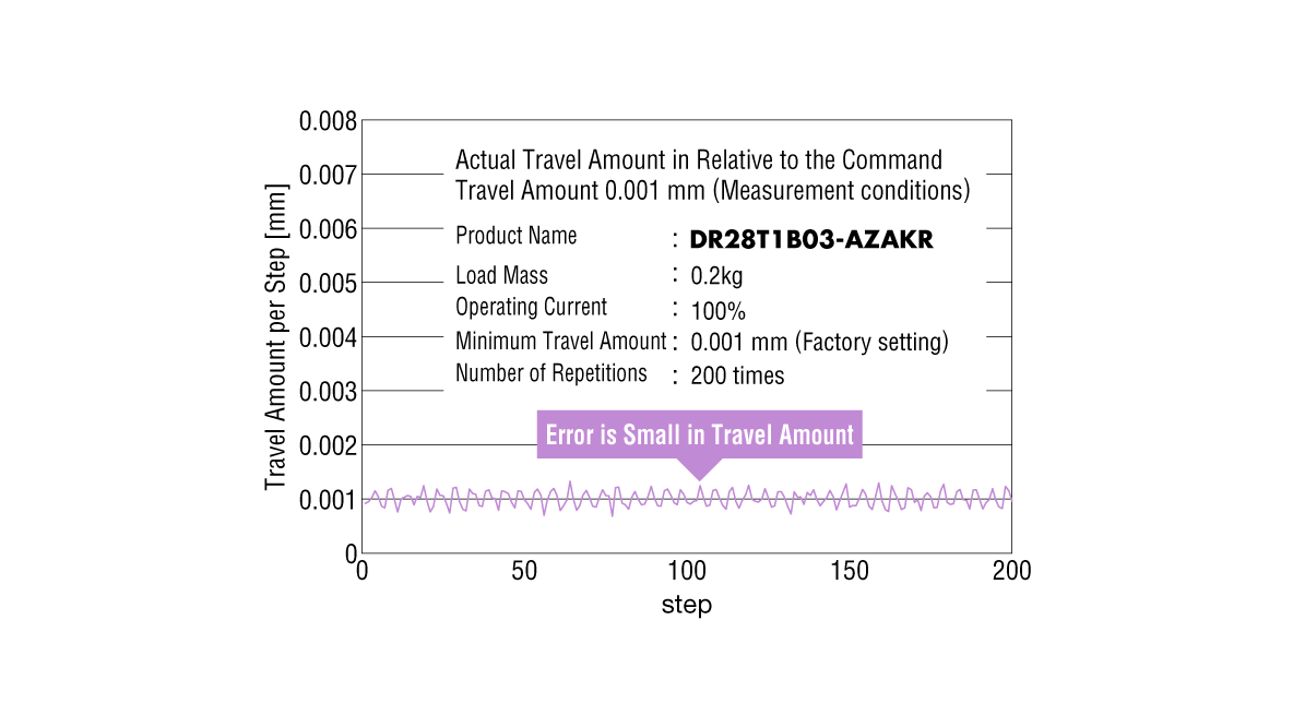 The microstep drive and smooth drive function* reduce vibration at low speed and allow for smooth movement. Ideal for drive shafts that stably supply solution from a syringe.