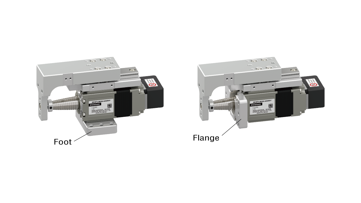 Products with mounting plates are available. 2 product lines are available: one for mounting from the back face using a flange, and the other for mounting from the top using a foot.
