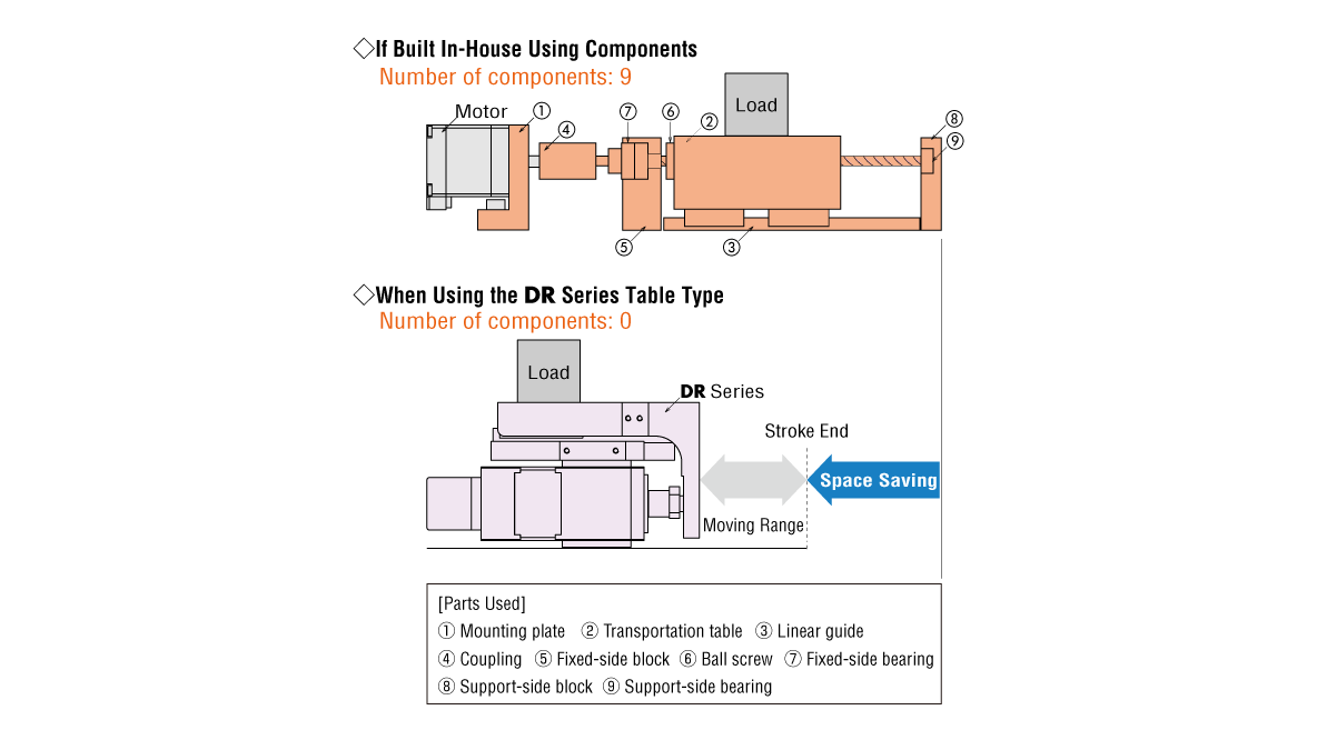 As there is no need to make the parts in-house, the time required for “equipment design and parts selection” and “assembly and accurate mounting adjustment” can be reduced, leading to more efficient equipment start-up.