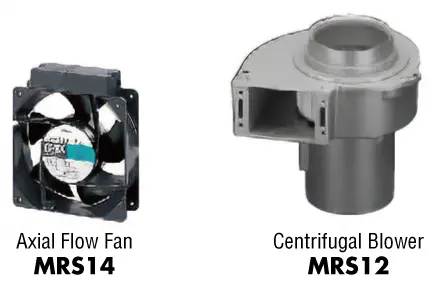 The MRS Series, with its large air flow and high static pressure, is suitable for cooling equipment that is crammed with devices inside with large air loss while air is flowing.