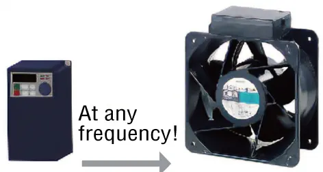 - If an inverter is connected to an alarm type fan and the setting frequency is set to lower value, the rotation speed may be reduced and the alarm may be activated.