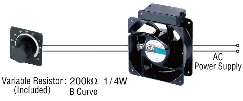 Variable speed type fans using variable resistors (included) are available for 160 mm frame size.