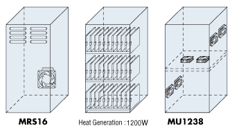 The MRS16 type fans are available with a low-speed alarm so that they can be replaced before it causes damage to the equipment in the unlikely event of deterioration in air flow.