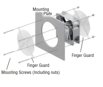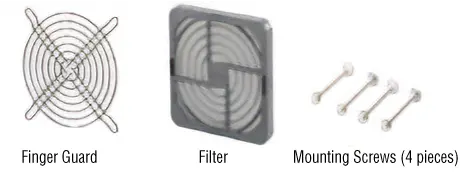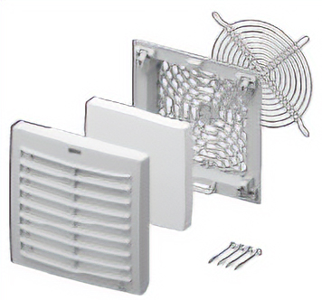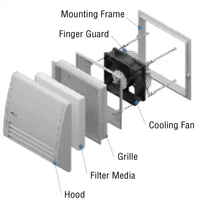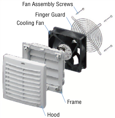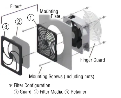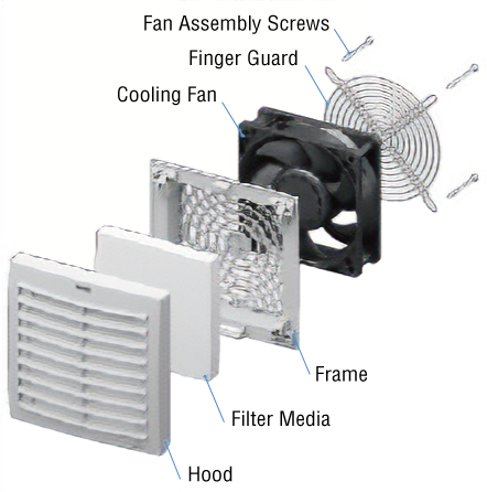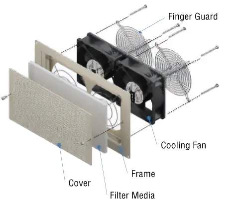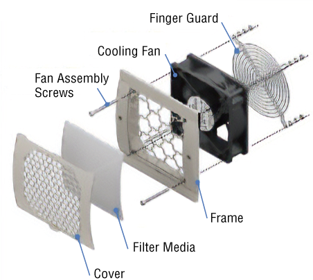 Mounting screws, filters, and other components have been installed to finger guards to prevent fingers and foreign particles from getting inside and to the panels which provide ideal ventilating and cooling for the control cabinet.