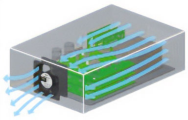 When pressure loss inside equipment is large, using a large fan is more effective in saving energy and wiring than using several small fans.
