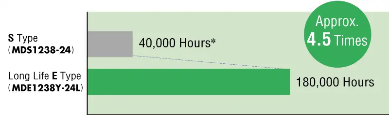 Long life fan significantly reduces the number of fan replacements compared to S Type, reducing total costs.