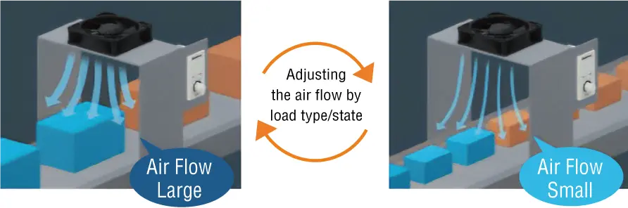- Cooling while adjusting air flow and static pressure due to changes in heat source