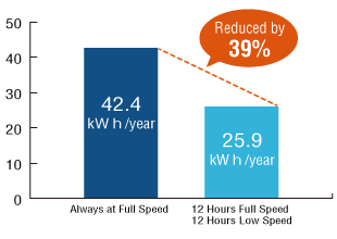 Also, when combined with a thermostat (sold separately), 2-speed switching can be automated (switching is triggered by ambient temperature).