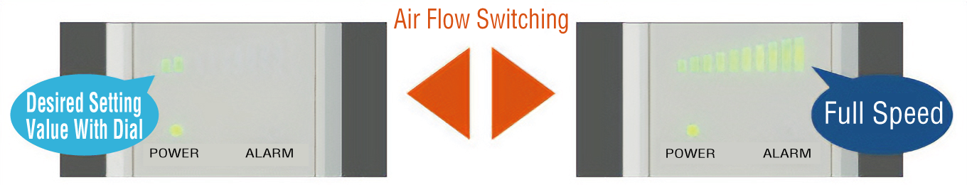 Also, the air flow of the fan can be checked on the controller’s display.