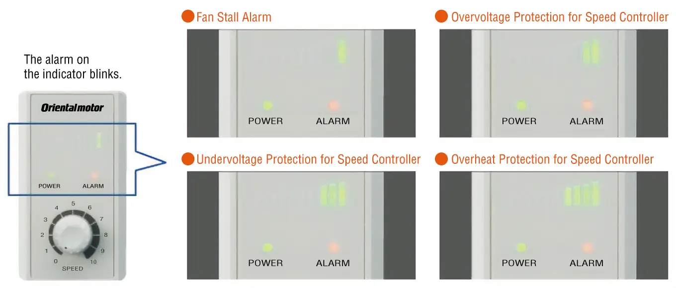 Outputs an alarm signal when there is an abnormality in the fan or controller. This contributes to the reliability of the equipment.