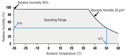 Example) When the temperature is 50 °C, it can be used with the relative humidity of about 43 % max.