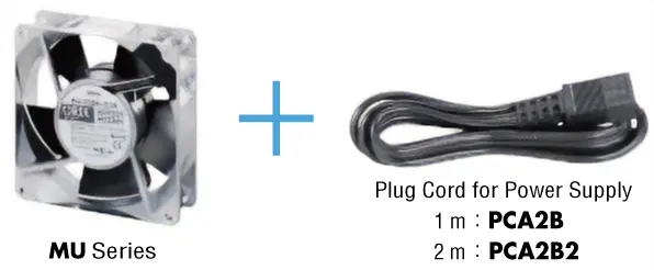 A plug cord included product is available that allows you to arrange a fan and a plug cord for power supply together.