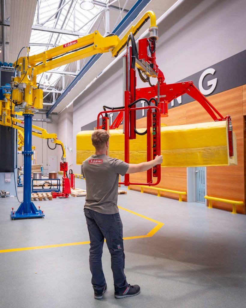 Dalmec manipulator Maxipartner, column mounted version for handling polyurethane blocks.