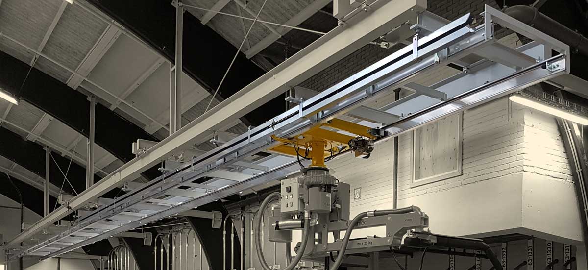The pneumatic manipulator fixed overhead version allows to eliminate any floor obstructions.