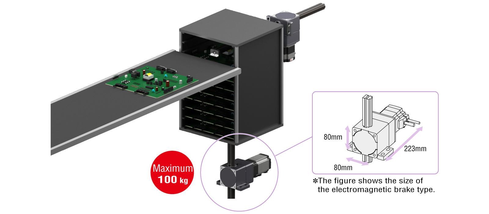 Vertical operation is also easy. Electromagnetic brake drop protection is also available. |