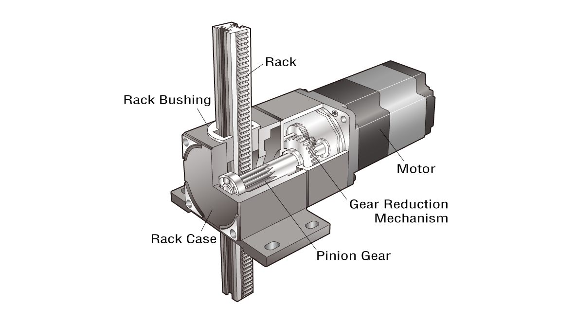 The rack-and-pinion system can easily convert the rotation of the motor into linear motion.