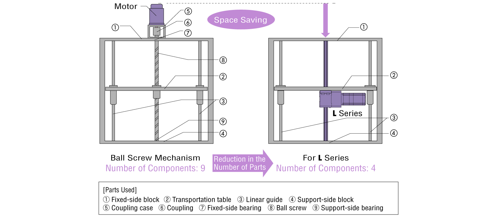 Although the linear motion mechanism part is compact in design, it can transport a large load due to its high strength processing.