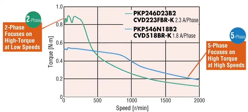For applications that require high-speed range, a 5-phase stepper motor with high-speed torque is recommended.