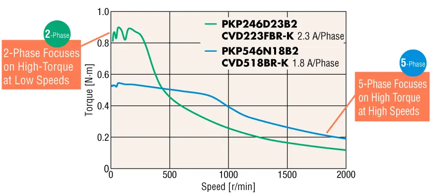 For applications that require high-speed range, a 5-phase stepper motor with high-speed torque is recommended.