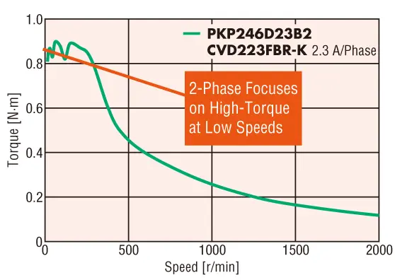 For applications that require rapid acceleration and deceleration, a 2-phase stepper motor with high-torque at low speed is recommended.